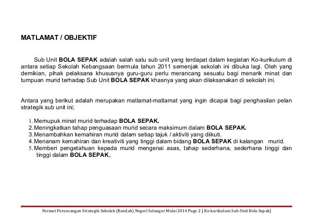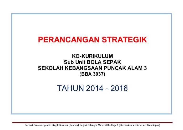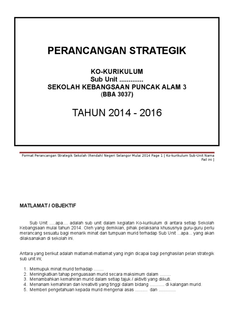 2 orang Guru Cemerlang M3 dan BI. Contoh perancangan strategik sekolah 1. Format Perancangan Strategik Sekolah Rendah Negeri Selangor Mulai 2014 Page 7 Ko-kurikulum Sub-Unit Nama Fail ini 8.
